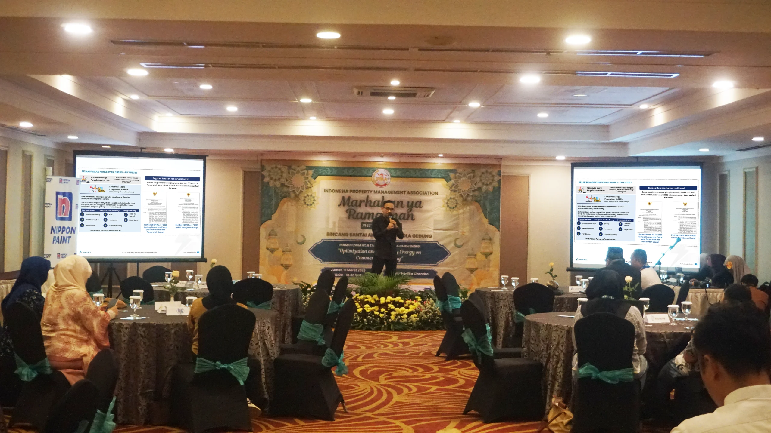 One of the key highlights of the event was the first technical session delivered by Ampotech, presented by Agung Permadi, Business Development Director of Indonesia. Under the theme “Optimization and Energy Efficiency in Commercial Buildings,” the session set the tone for the day by addressing one of the most pressing challenges faced by building operators today.